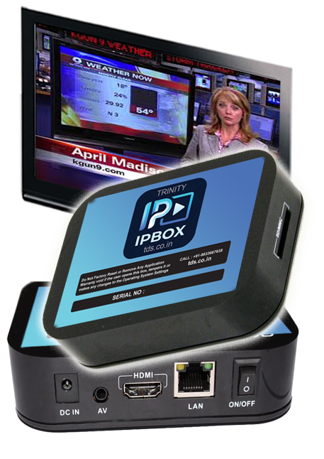 IPBox is a compact Linux–Android based device that allows you to rebroadcast any live content or TV channel. Simply enter the stream link remotely through our dashboard, upload your banners and logos, and connect IPBox to the internet. The HDMI or AV output will display the live event complete with your customized branding.